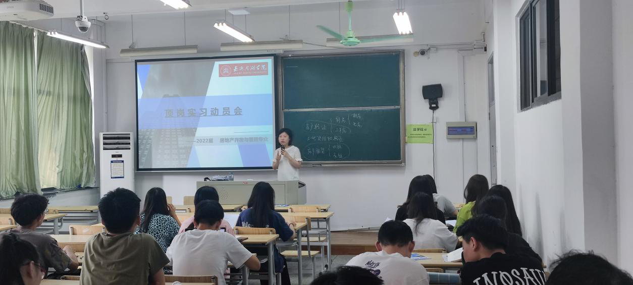 2021年10月27日上午,beat365官网房地产开发与管理专业在教一105召开2022届顶岗实习动员大会。会议由邵方璇老师主持,房地产N181全体同学及部分专业指导老师参加。