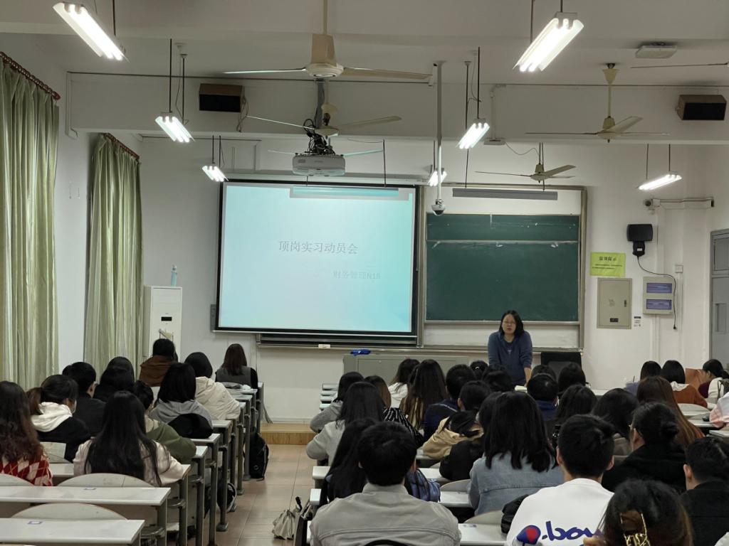 2021年11月4日下午16时,beat365官网财务管理专业在教一303召开本专业顶岗实习动员大会。财务管理专业教师和财务管理N18级学生全部到场参会。