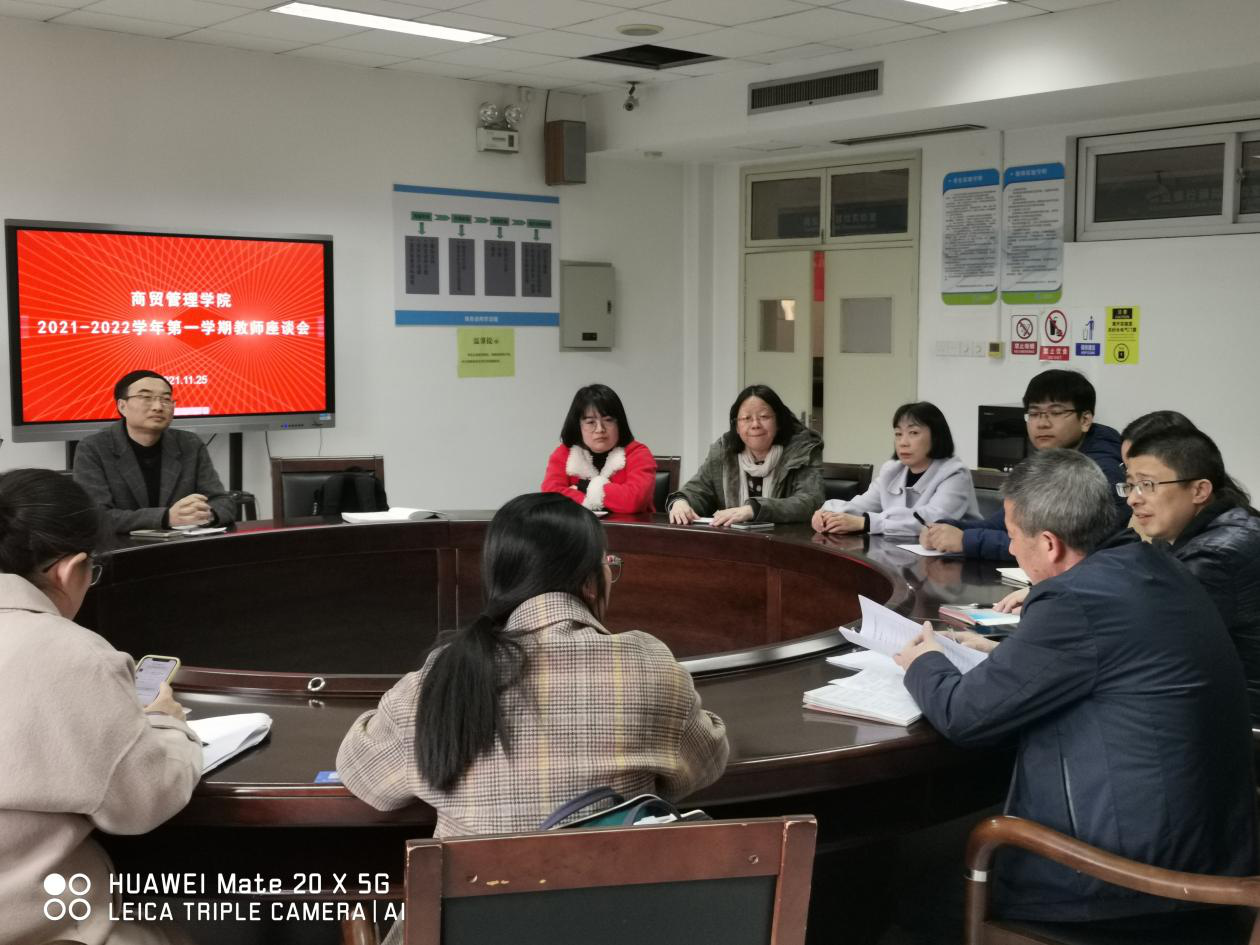 2021年11月25日下午,beat365官网在经管实验中心会议室召开了2021-2022-1学期教师座谈会。会议由孔冬副院长主持,各专业负责人及教师代表共14人参加此次会议。