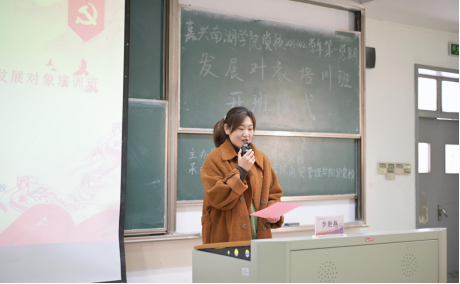 刘勇副书记在开班典礼上致辞,阐述了学校举办发展对象培训班的初心与宗旨。为确保培训取得实效,刘书记对学员们提出了三点要求:一是要把握机会,学党史、感党恩,汲取党的力量,传承党的精神;二是要端正入党动机,以赤诚之心全心全意为人民服务,通过自身行动带动周围同学;三是要严于律己,积极投身于社会实践,争做周围人的榜样。