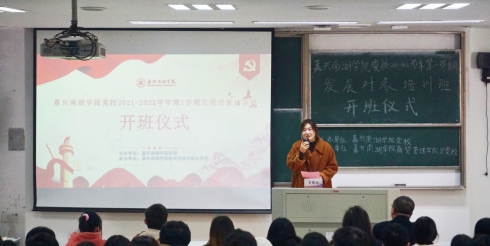 2021年11月25日,伴随着庄严肃穆的国歌,怀揣着向党组织靠拢的信念,嘉兴南湖学院党校2021-2022学年第1学期发展对象培训班开班典礼在教一159教室拉开了序幕。