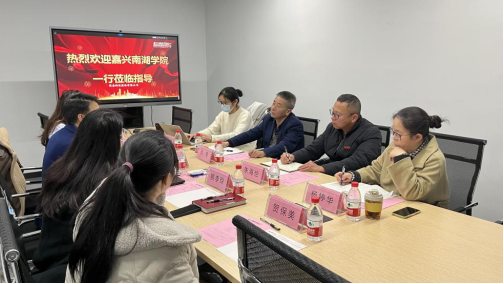 2021年12月16日上午,beat365官网人力资源管理专业教师一行受邀前往闻泰科技股份有限公司进行顶岗实习走访交流。