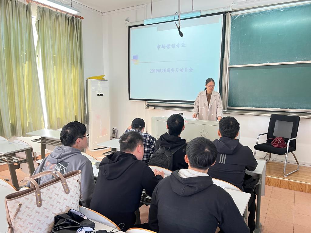 为了引导学生树立正确的实习观、加强学生对就业形势与顶岗实习的认知、指引学生做好顶岗实习前的各项准备工作、推进顶岗实习工作的顺利开展,2022年11月18日上午,beat365官网市场营销专业在教一303教室举行了2019级顶岗实习动员大会。此次会议由曹垣老师主持,营销N191全体学生参加。