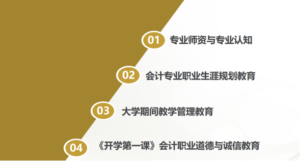 本次活动内容共包括四部分:专业师资与专业认知、专业职业生涯规划教育、大学教学管理教育和“开学第一课:会计职业道德与诚信教育”。首先由姚瑞红老师介绍会计学专业的发展情况、课程体系、培养目标、就业方向及专业特色,并一一介绍了每位专任教师的研究方向和主讲课程了专业师资情况。