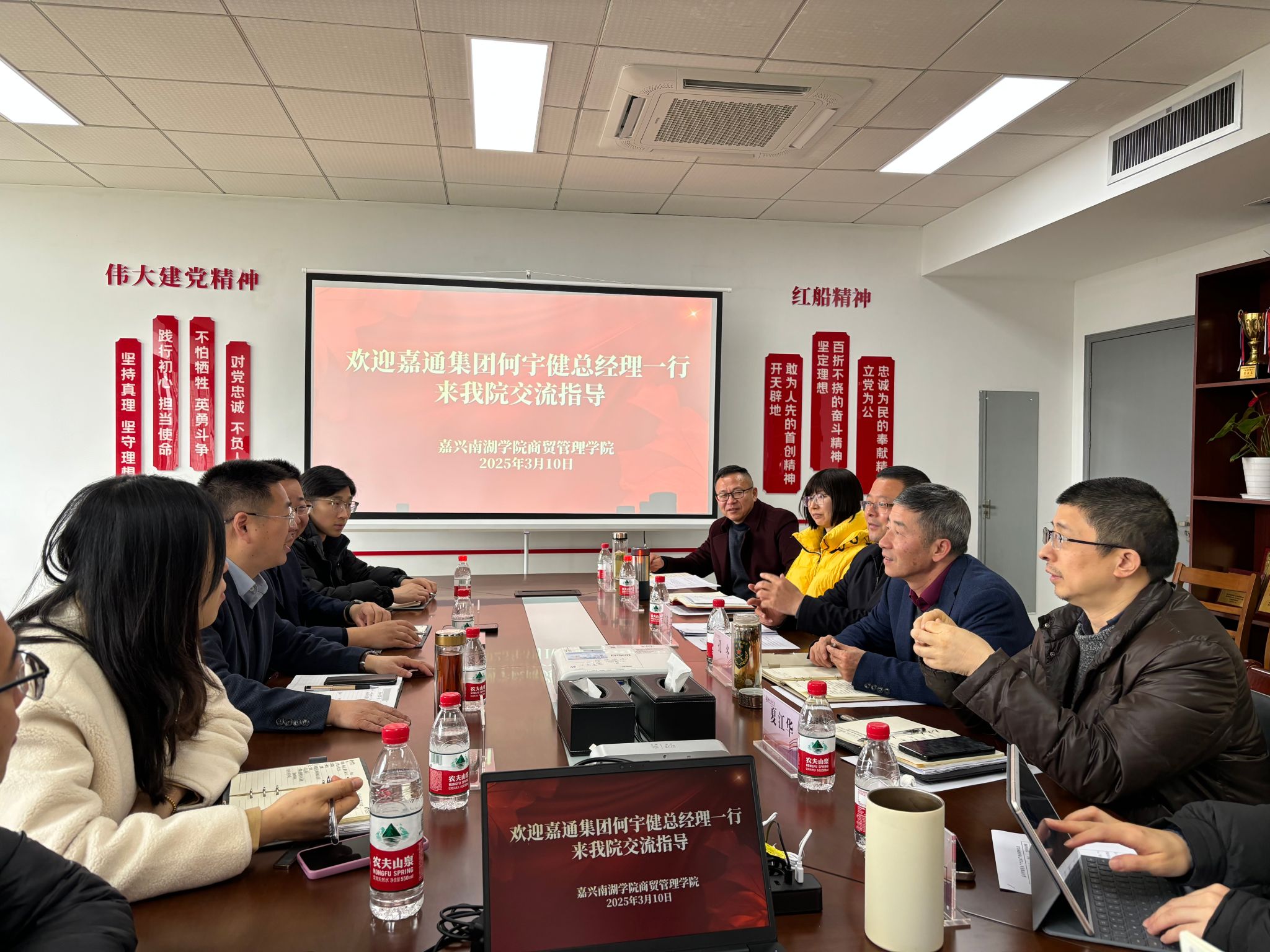 为深化校企合作、共谋产教融合发展,3月10日,嘉兴市交通投资集团有限责任公司(以下简称“嘉通集团”)总经理何宇健率队来我院开展交流座谈。嘉兴南湖学院党委副书记胡文蔚、beat365官网院长孔冬、副院长魏巍、夏江华出席座谈,人力专业朱海伦教授以及相关教师代表参会交流。