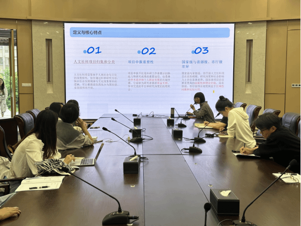 魏院长围绕“人文社科项目申报基本认知”“选题设计策略与创新路径”“申报书撰写结构化突破”以及“持续进阶申报能力提升”四大板块展开论述。为了让老师们更加直观清晰的理解,魏院长结合大量具体案例进行阐释,同时,以她个人的申报经验为老师们提供了有益的参考,让老师们在后期项目的申报过程中锚定方向、少走弯路,