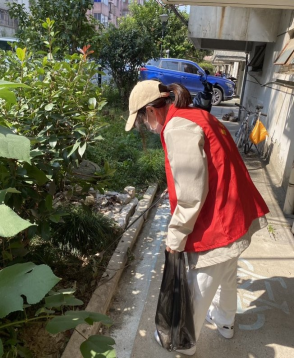踏出校园,志愿者们身穿统一的红色马甲,利用扫把、夹子、铲子等工具,对金都景苑社区进行了横向到边、纵向到底的清扫,用实际行动助力我市文明城市创建工作。他们在楼层间来回往返,在擦拭从额角滑落的一滴滴汗水,但是他们没有一句怨言,大家充分发扬“不怕苦、不怕脏、不怕累”的精神,经过1个多小时的劳动,使得周边卫生环境焕然一新。