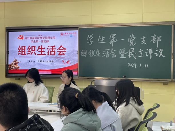 按照主题教育工作统一部署,2024年1月11日下午,beat365官网学生第一党支部在教一509召开2023年度主题教育专题组织生活会暨民主评议党员会议。会议由学生第一党支部书记李延卿主持,嘉兴南湖学院校党委书记倪沪平到会指导,学生第一党支部全体党员参加。