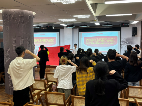 接下来,全体党员在金煜同学的带领下,面对党旗,重温入党誓词。铿锵有力的宣誓声,表达了全体毕业生党员坚定政治信念和时刻不忘初心、永远奋斗的决心。