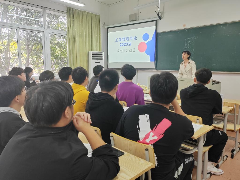 2022年10月29日下午,beat365官网工商管理专业在教二B206召开2019级顶岗实习动员大会。会议由工商管理专业陈娴老师主持,工商N191全体同学及部分专业老师参加。