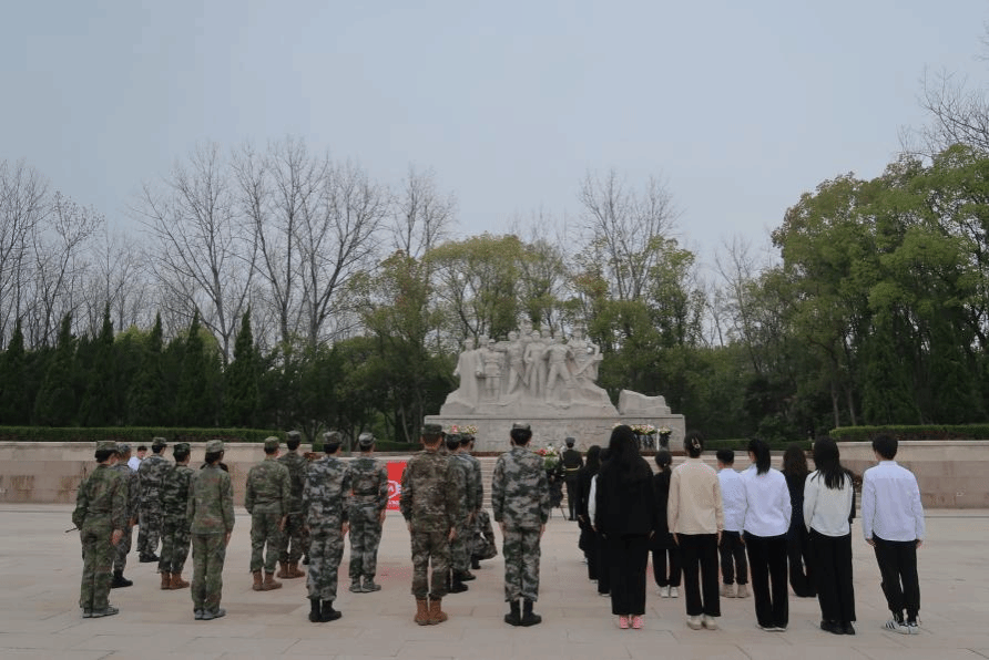 活动现场,庄严肃穆。师生瞻仰纪念碑,敬献花篮,行静默礼,沉痛悼念革命先烈,并致以诚挚的敬意和深深的怀念。祭英烈活动结束后,学生第五党支部书记付晓豪老师在悼唁词中强调烈士精神的高尚意义,鼓励全体师生们坚定理想信念、赓续红色命脉。“我们要不忘初心,牢记使命,向伟大的革命先烈学习,深学笃行革命精神,发挥党员、团员、退役军人的模范带头作用;各位同学要积极践行‘三个大学’战略发展目标,勤学苦练,做一名合格的新时代青年大学生”。