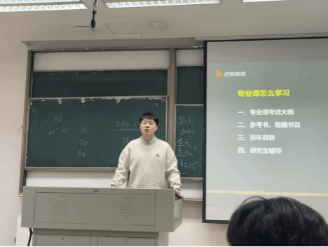 紧接着,启航教育刘老师从考研现状,考研历年报名人数、考研需要具备的能力以及院校的选择、考研流程及专业课学习方法等方面,提醒同学们对于考研的核心认知一定要清晰,即“考研是一个选拔性考试而非过关性考试”。要提前开始规划好自己的大学生涯,不能抱有侥幸心理,一定要脚踏实地,放平心态。