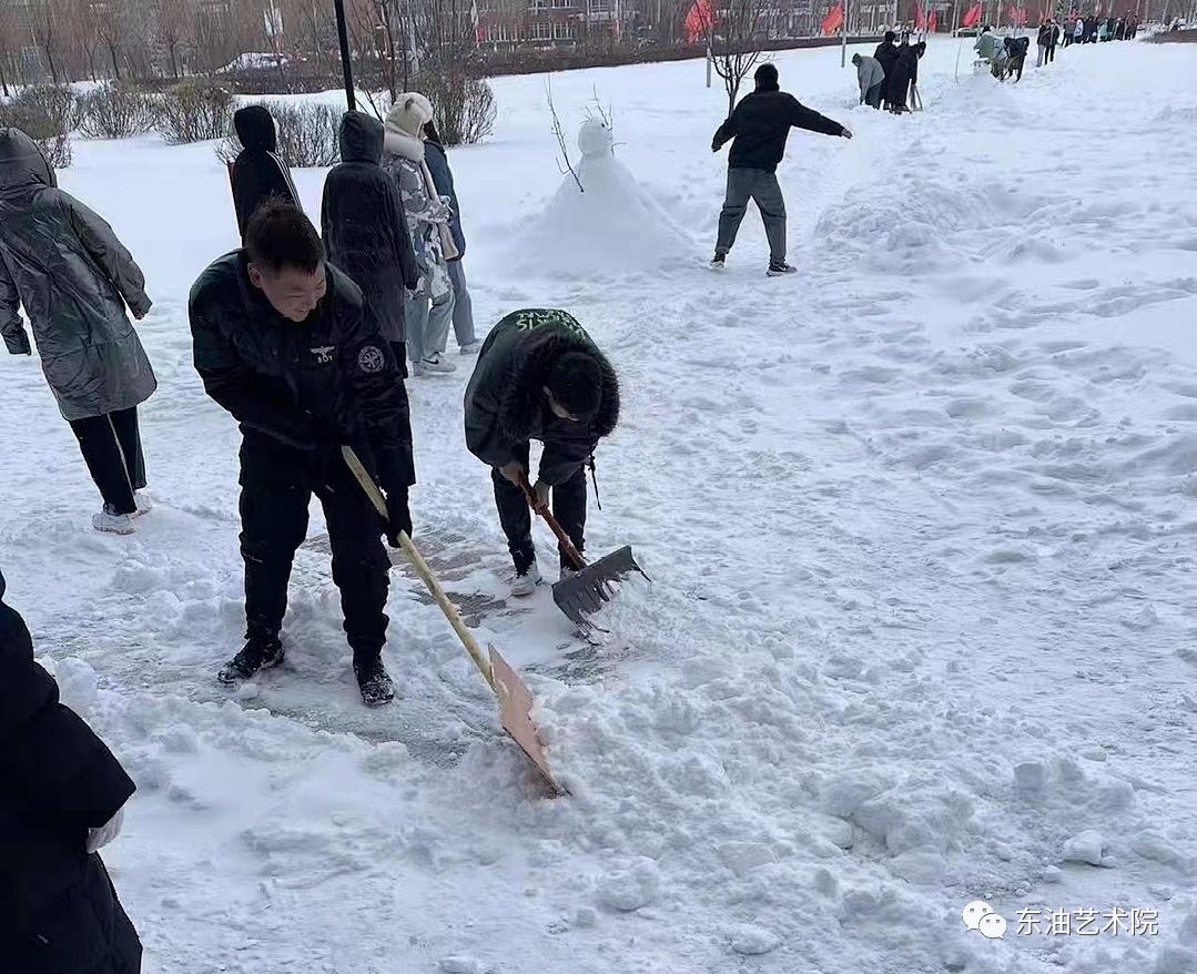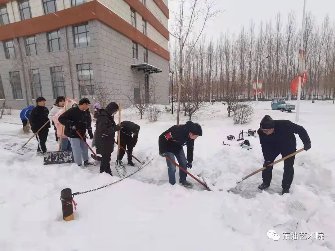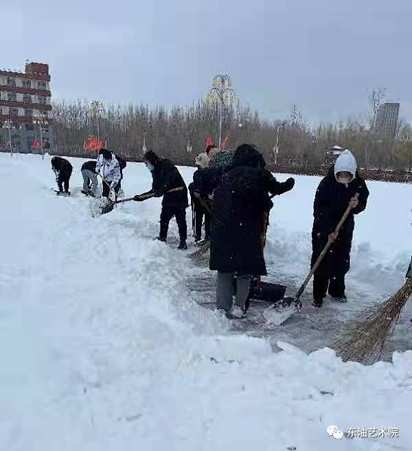 为了给老师同学们开辟一条道路,艺术院的大一新生们冒着严寒和风雪清扫着艺术院楼前广场,beat365领导也加入到扫雪的队伍中与同学们一同克服风雪困难!