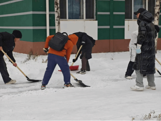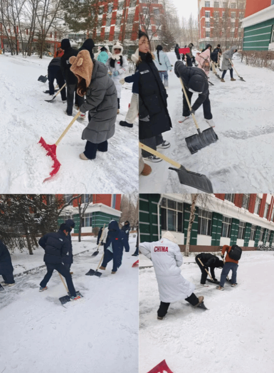在清扫过程中,同学们不畏严寒,齐心协力。学生们积极踊跃,他们手持扫帚,清扫路面的浮雪,挥舞铁锹,铲除厚厚的积雪,尽管双手冻得通红,但同学们的热情丝毫不減,分工明确,配合默契,呈现出一片热火朝天的劳动景象。在大家的共同努力下,经过数小时的奋战,beat365中文唯一官网分担区的主要道路、人行道及公共区域的积雪被彻底清理干净,道路重新恢复了往日的整洁与畅通。