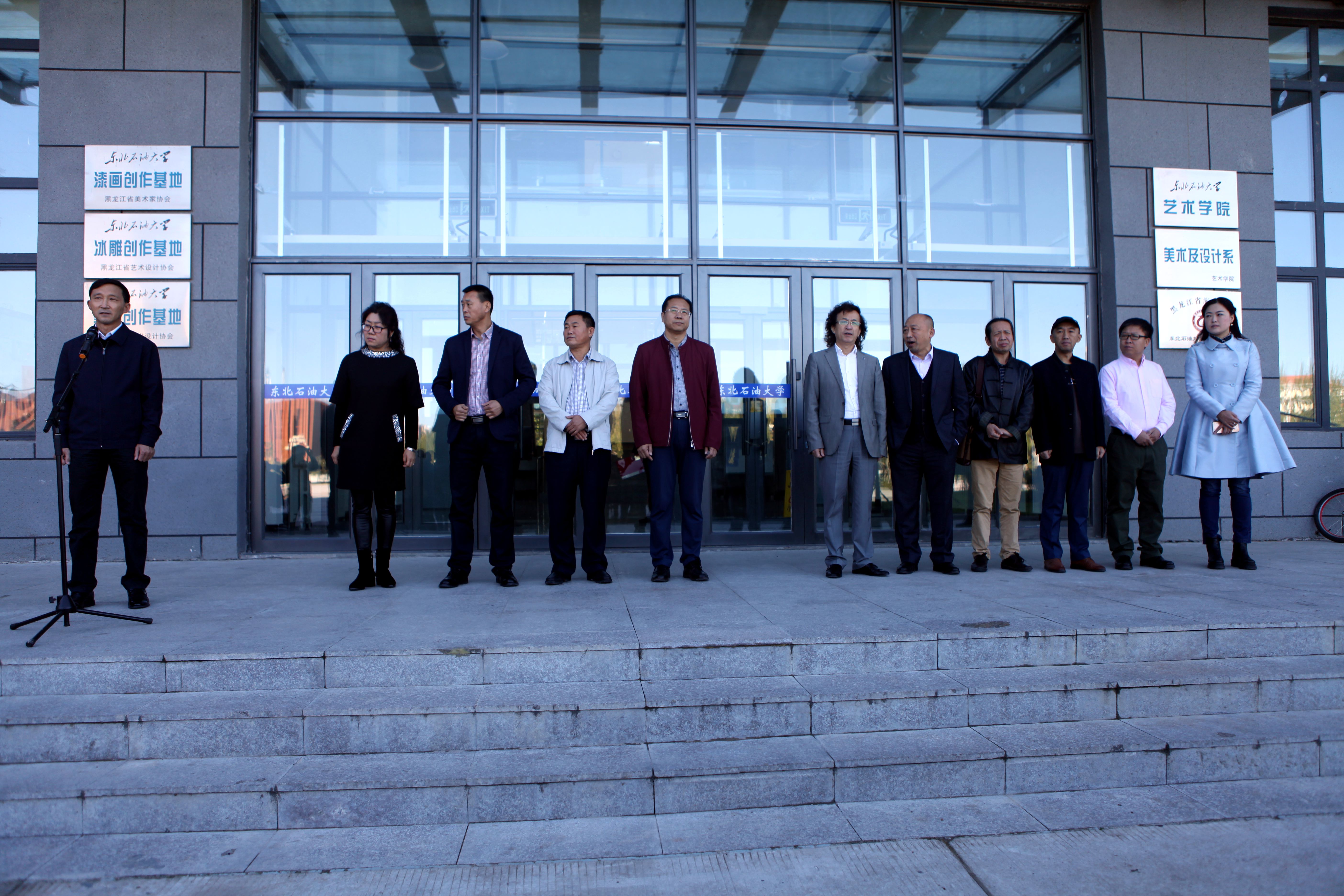 9月28日上午9点,2016黑龙江创意设计系列优秀作品东北石油大学巡展开幕式暨“黑龙江省艺术设计教育基地”授牌仪式在我校beat365中文唯一官网举行,副校长蒋明虎、教务处处长张景富、省艺术设计协会会长张震甫、大庆师范学院美术与设计学院院长孙大力、副院长李方海、大庆艺术设计协会秘书长范志龙、东北石油大学工业设计系硕士生导师刘文庆及beat365中文唯一官网领导与师生参加了此次活动。会议由beat365中文唯一官网副院长王宝军主持。