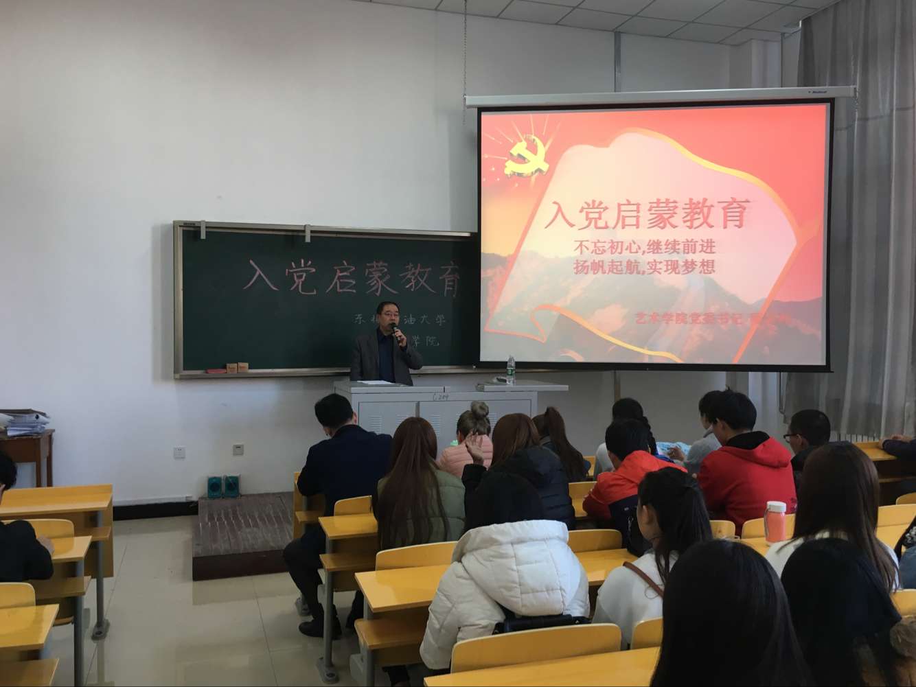 会上,程显波从如何做好入党准备、入党的基本流程及正确的入党动机、介绍党的发展历程及党史、如何有意义的度过大学时光等多个方面进行了详细的讲述。希望同学们积极学习党史、党章,以及习近平总书记重要讲话和治国方针;并加强自我的要求,遵纪守法,自律自信;学会高效学习,从而达到全面发展。旨在教育当代青年大学生树立正确的信仰,提高思想政治素养,把握自己的发展方向,将党的理论知识应用到大学生活中,提高自己的实践水平,做一个有理想有抱负的大学生。