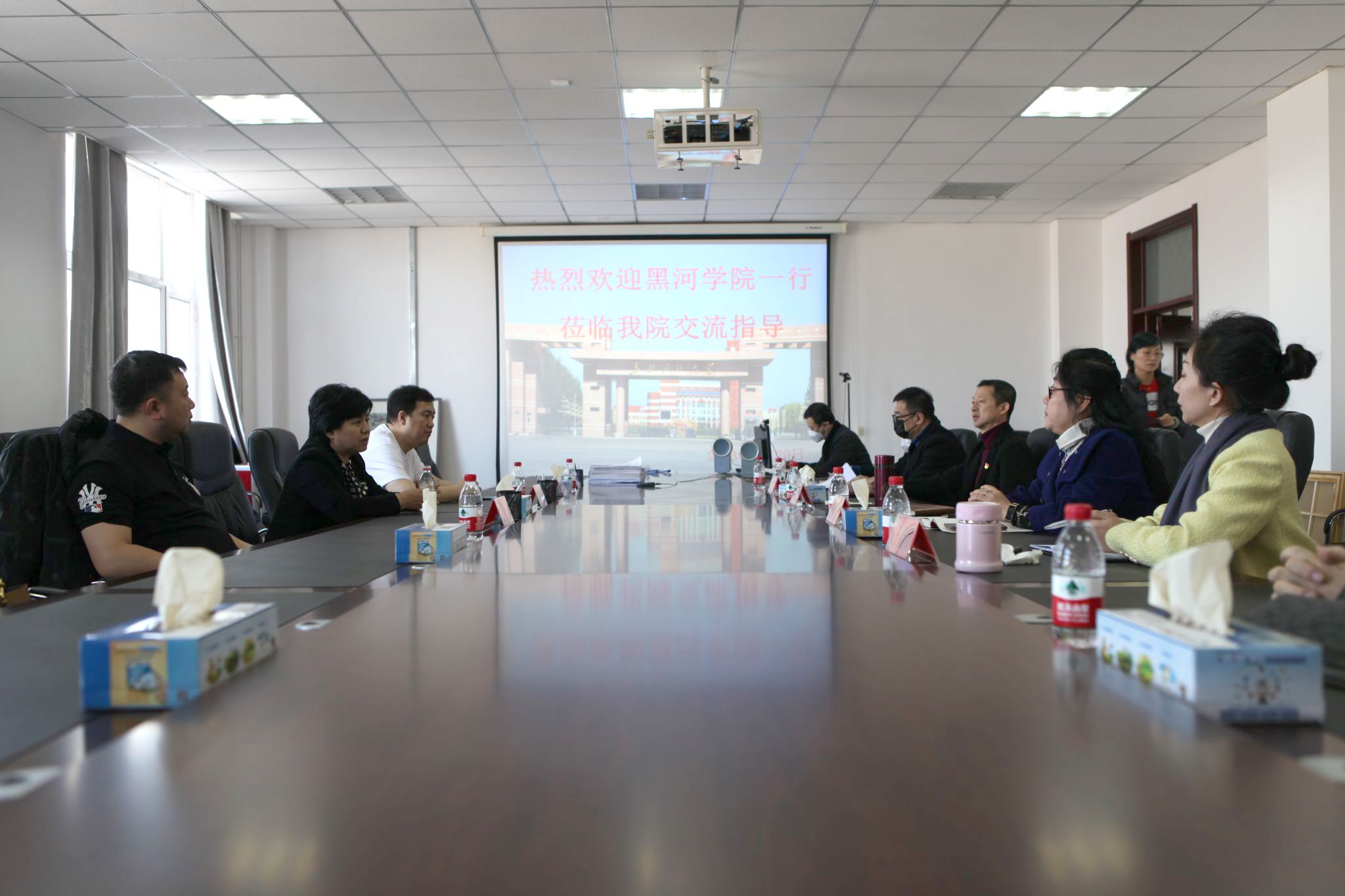 3月18日,黑河学院音乐学院院长徐卫带队一行4人,来beat365调研走访交流,beat365中文唯一官网领导班子及音乐系相关人员参加了调研座谈。