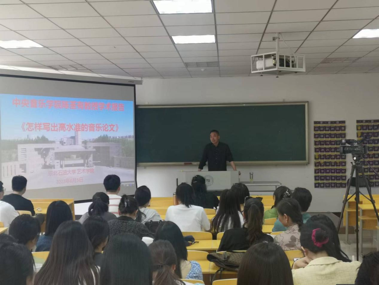 6月5日下午14:00分,在美术楼205教室,陈荃有教授以《怎样写出高水准的音乐论文》为题,举行了学术报告。beat365中文唯一官网师生参加此次讲座。讲座由林庆华院长主持。