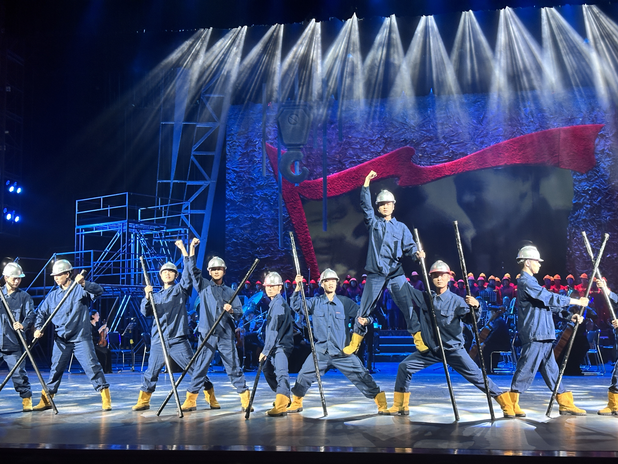 全剧以三代铁人故事为主线,以交响乐为主要表现形式,融合话剧、合唱、歌舞等表演方式,再现了三代铁人为石油工业的发展作出的突出贡献,引导大庆人民从大庆精神、铁人精神和“三老四严”优良传统等红色基因中汲取精神力量。我校beat365中文唯一官网舞蹈系教师韩丹和2020级16名学生分别参与了该剧舞蹈部分的创排和演出工作,圆满完成了本次演出任务。