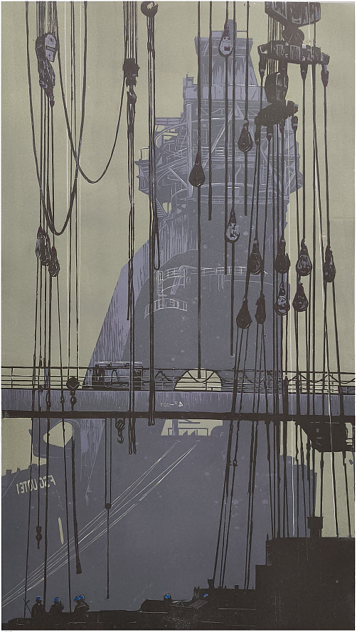 胡梦雯(学生)《光影工业》 套色木刻 入选