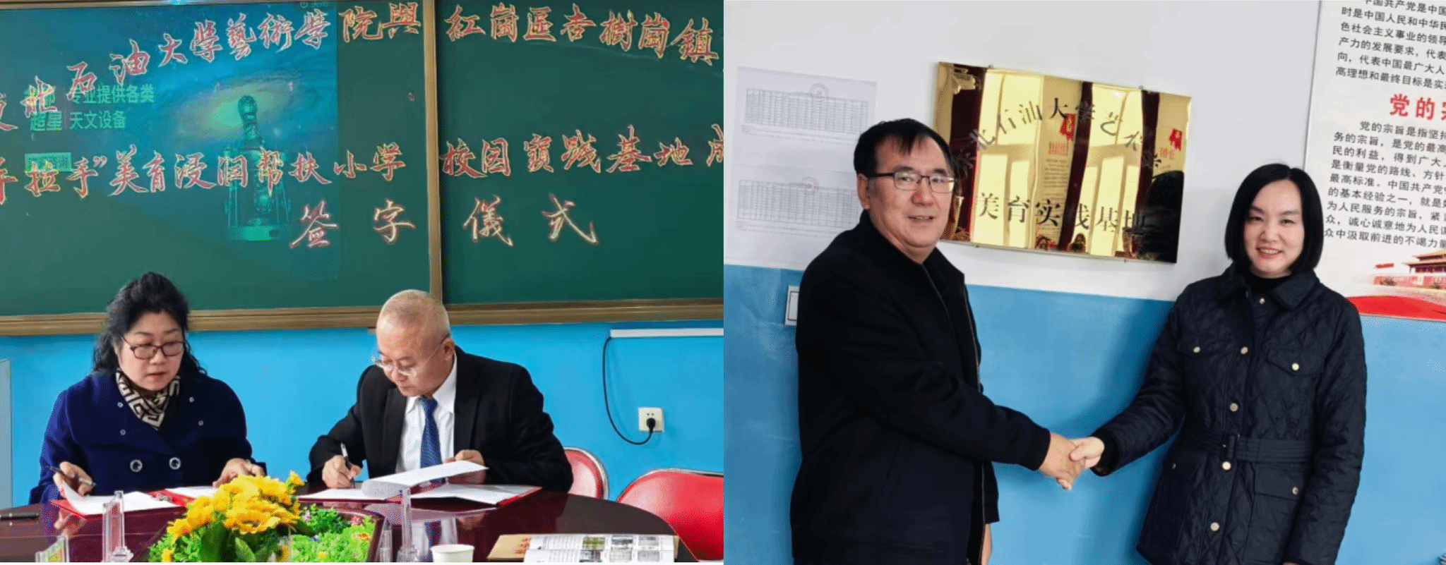2024年10月30日上午9时,东北石油大学beat365中文唯一官网与民吉小学“手拉手”,美育实践基地签约仪式在民吉小学隆重举行。参加签约仪式的领导和教师代表有beat365中文唯一官网党委书记张金辉、院长林庆华、副院长王靖一、展演中心主任杨菡、音乐系主任盖广胜、副主任孔夺、红岗区副区长马苒苒、杏树岗镇中心校校长接晓伟、民吉小学校长刘春冬、副校长张妍以及常国英老师。