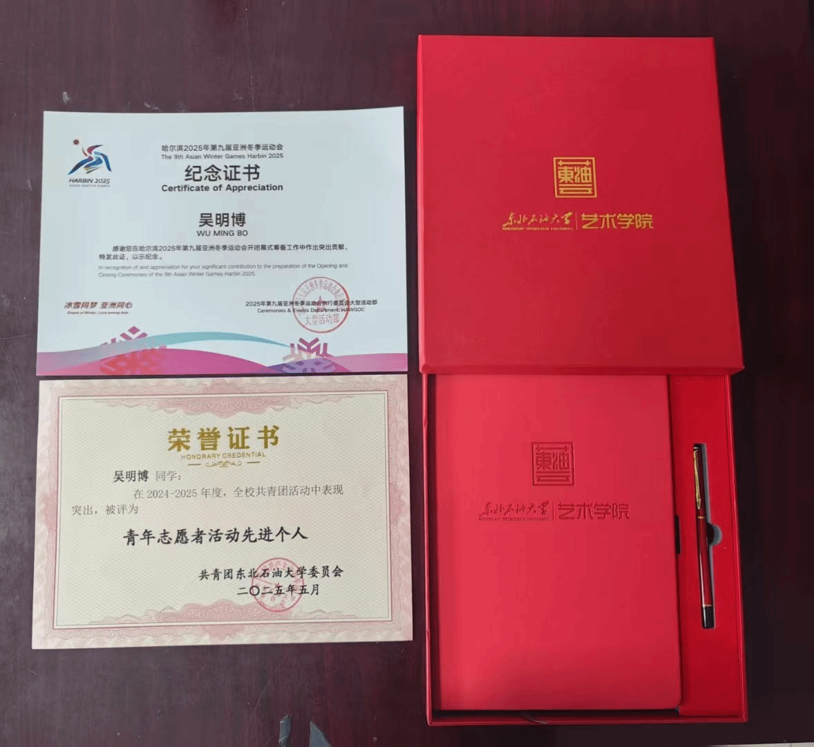 比赛结束后的表彰仪式中,校院两级领导为受邀参加第九届亚冬会开闭幕式表演的同学们颁发了亚冬会纪念证书、校团委志愿者证书、以及学院的礼物。开闭幕式上,舞蹈表演专业的33名同学参演了《长歌颂冰河》《点亮亚洲》等节目。音乐表演专业6名同学参演开幕式暖场节目《龙马弦韵》。同学们用饱满的热情、高超的琴技和奔放的舞姿,向世界展示了中国底蕴深厚的传统文化和富有地域特色的冰雪文化。同学们经历过从晨光熹微到星斗满天,连续奋战19小时重构节目的艰难时刻。700多个小时的排练,在84个日日夜夜里,与时光竞走,同星辰共舞。其敬业精神成为开幕式“雪冷血热”主题的生动诠释。学校为学生们提供了心理与生活的全方位保障。